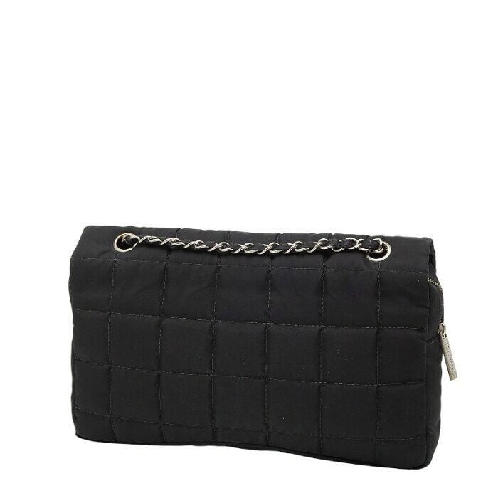 シャネル ココマーク チョコバー チェーン ショルダーバッグ ブラック ナイロン レディース CHANEL 【中古】
