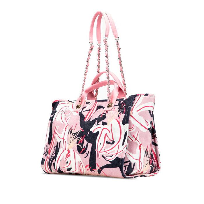 シャネル ドーヴィル トートバッグ ハンドバッグ ピンク マルチカラー ベロア レザー レディース CHANEL 【中古】