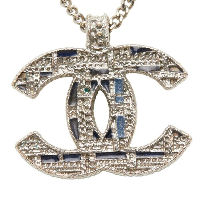 シャネル ココマーク パール ツイード ネックレス シルバー ブラック ブルー メタル レディース CHANEL 【中古】