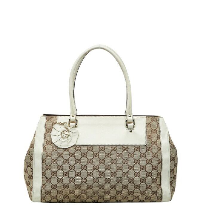 グッチ GGキャンバス トートバッグ ハンドバッグ ショルダーバッグ 190246 ホワイト ベージュ キャンバス レザー レディース GUCCI 【中古】