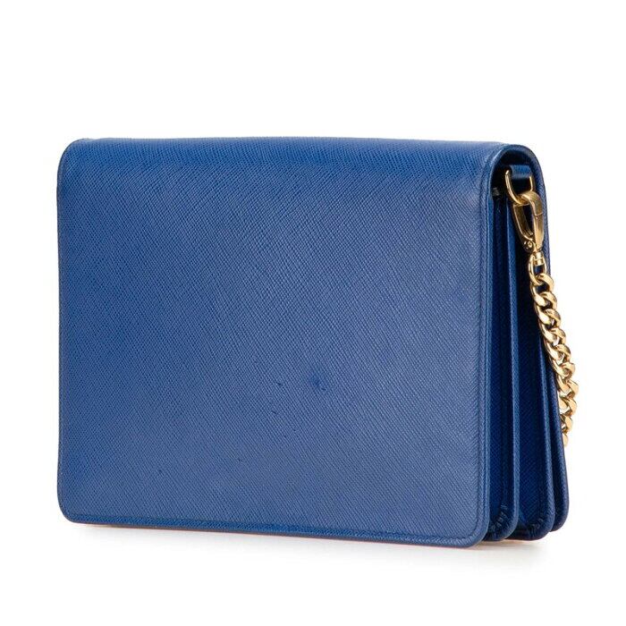プラダ チェーン ショルダーウォレット バッグ 1BP012 ブルー サフィアーノレザー レディース PRADA 【中古】