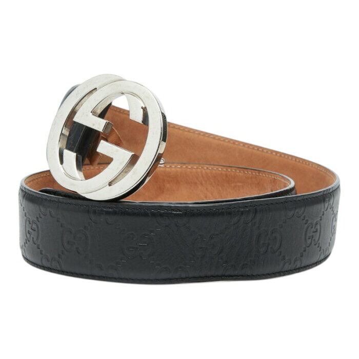 グッチ グッチシマ インターロッキングG ベルト サイズ:85/34 411924 ブラック レザー レディース GUCCI 【中古】