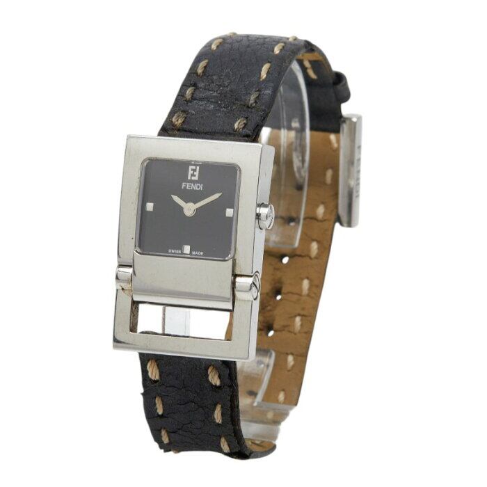 フェンディ オロロジ 腕時計 5200L クオーツ ブラック文字盤 ステンレススチール レザー レディース FENDI 【中古】