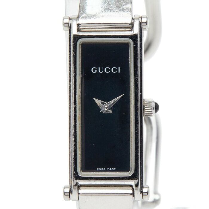グッチ バングルウォッチ 腕時計 1500L クオーツ ブラック文字盤 ステンレススチール レディース GUCCI 【中古】
