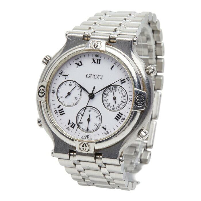 グッチ クロノグラフ 腕時計 9300 クオーツ ホワイト文字盤 ステンレススチール メンズ GUCCI 【中古】