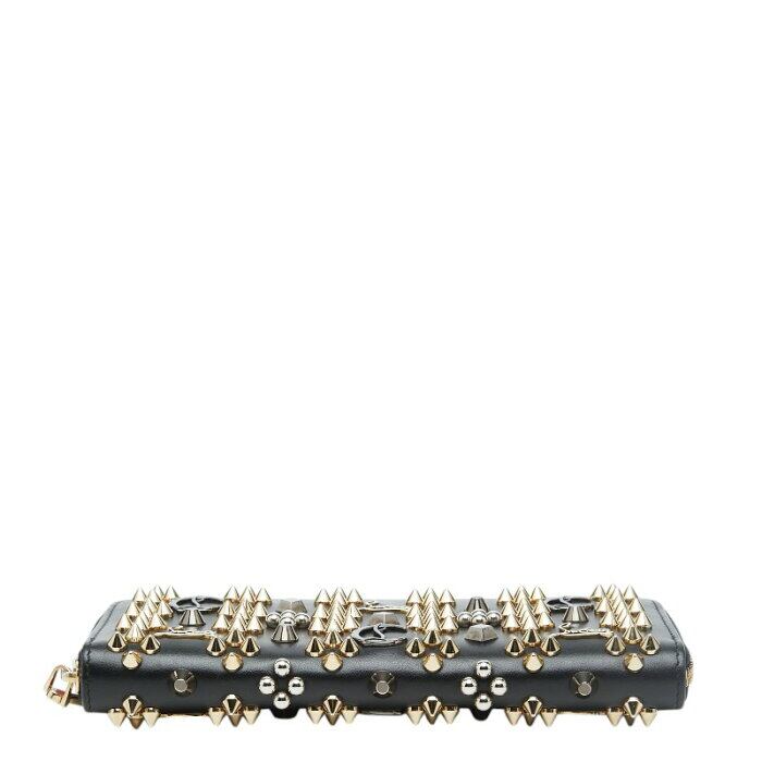 クリスチャンルブタン パネトーネ ラウンドファスナー 長財布 1175097 ブラック ゴールド シルバー レザー スタッズ レディース Christian Louboutin 【中古】
