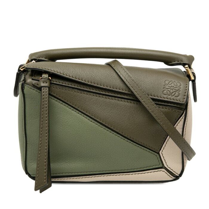 ロエベ アナグラム パズルバッグ ミニ ハンドバッグ ショルダーバッグ 2WAY カーキ系 カーフ レディース LOEWE 【中古】