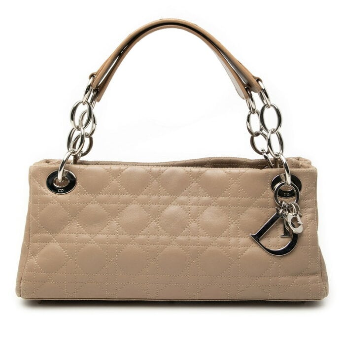 ディオール カナージュ レディディオール イーストウエスト ハンドバッグ チェーン ロゴチャーム ベージュ レザー レディース Dior 【中古】