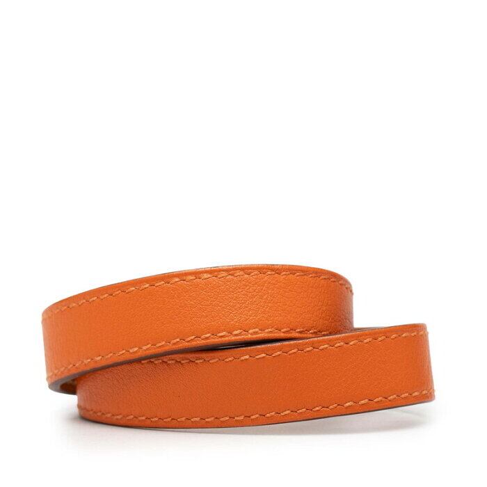 エルメス ケリー ドゥブルトゥール 2連 ブレスレット XS オレンジ ゴールド金具 レザー メッキ レディース HERMES 【中古】