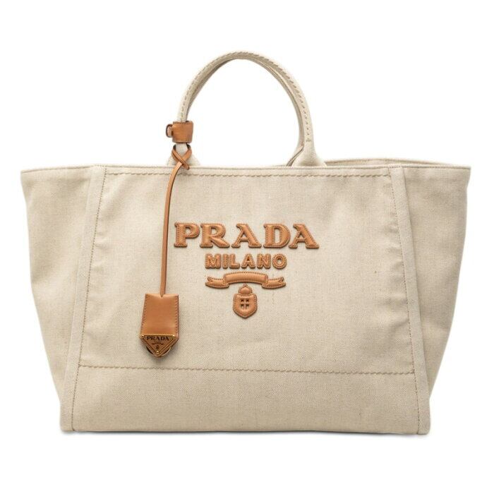 プラダ トートバッグ 1BG473 ホワイト ベージュ キャンバス レザー レディース PRADA 【中古】