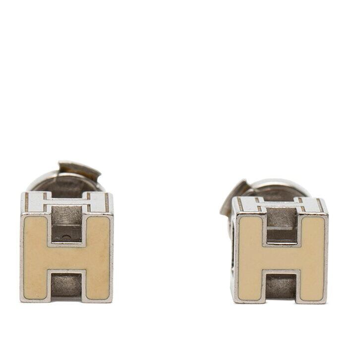 エルメス セリエ カージュ ド アッシュ Hキューブ スタッドピアス シルバー アイボリー メタル レディース HERMES 【中古】