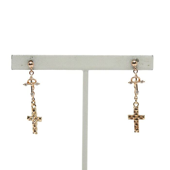 K10PG ピンクゴールド ダイヤ0.08ct クロスモチーフ ピアス レディース 【中古】