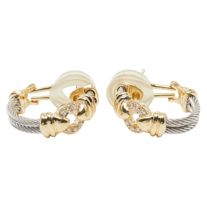 シャリオール K18YG イエローゴールド K18WG ホワイトゴールド ハーフコンビ ダイヤ ワイヤーモチーフピアス ピアス レディース CHARRIOL 【中古】