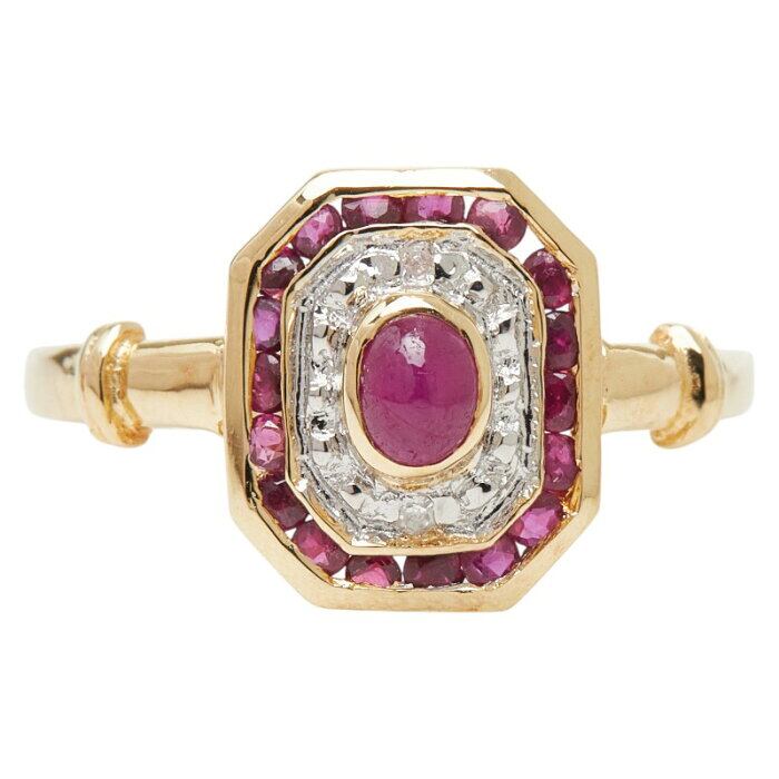 K18YG イエローゴールド K18WG ホワイトゴールド ルビー0.24ct ルビー0.35ct ダイヤ0.01ct リング 指輪 レディース 12号 【中古】