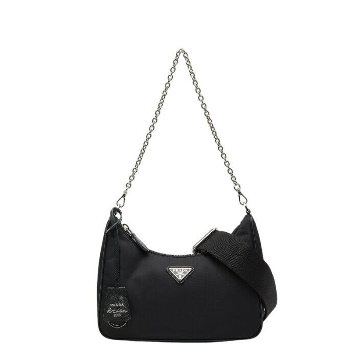 プラダ Re-Edition 2005 Re-Nylon ショルダーバッグ チェーンハンドバッグ 2WAY 1BH204 ブラック ナイロン サフィアーノレザー レディース PRADA 【中古】