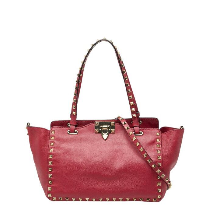 ヴァレンティノ ガラヴァーニ ロックスタッズ スモール トートバッグ ショルダーバッグ 2WAY ピンク レザー レディース VALENTINO 【中古】