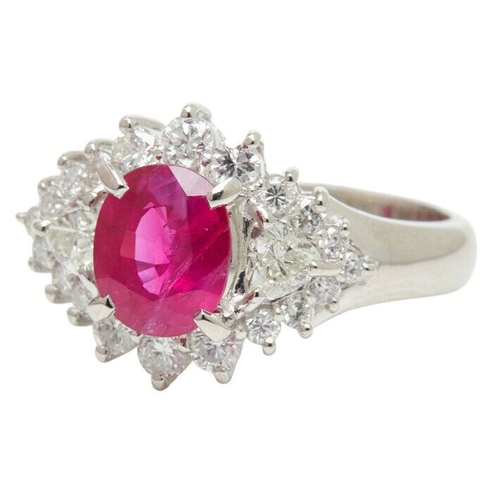 Pt900 プラチナ ルビー1.24ct ダイヤ0.73ct フラワーモチーフ リング 指輪 レディース 10.5号 【中古】