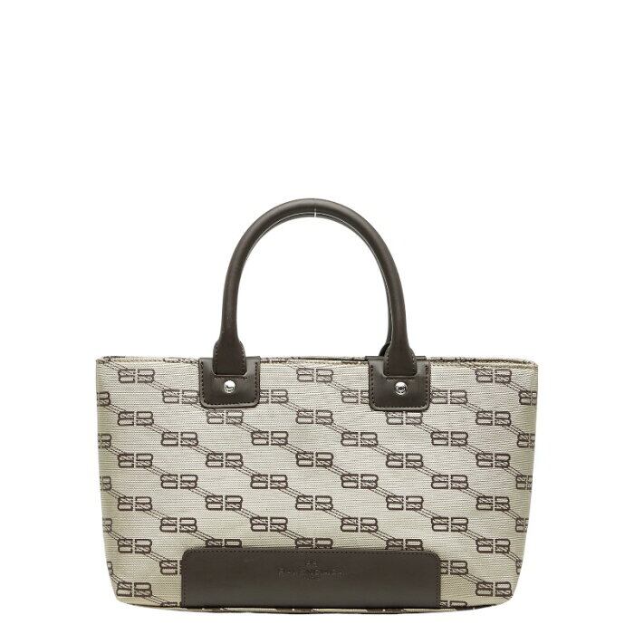 バレンシアガ BBロゴ ハンドバッグ トートバッグ ベージュ ブラウン キャンバス レザー レディース BALENCIAGA 【中古】