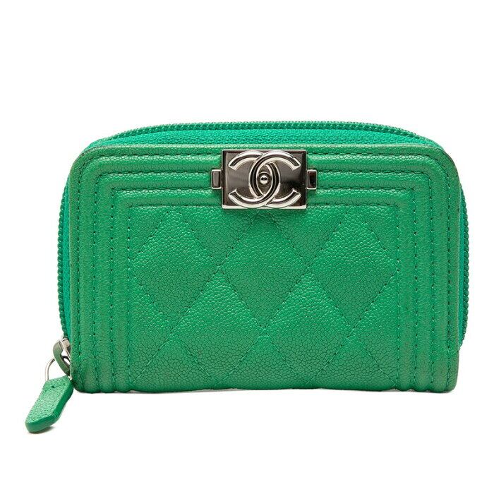 シャネル ココマーク ボーイシャネル コインケース 小銭入れ グリーン キャビアスキン レディース CHANEL 【中古】