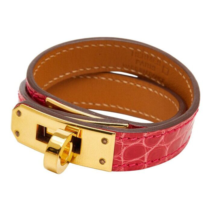 エルメス ケリー ドゥブルトゥール T1 ブレスレット レッド アリゲーター レディース HERMES 【中古】