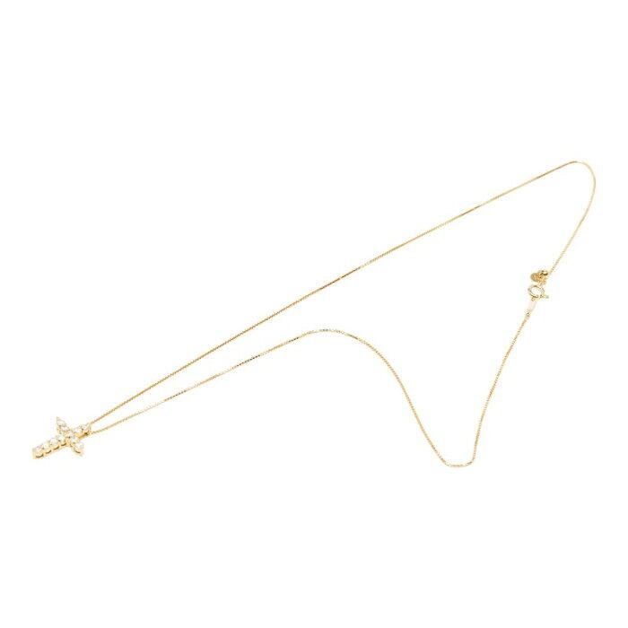 K18YG イエローゴールド ダイヤ0.55ct クロスモチーフ ペンダント ネックレス レディース 【中古】