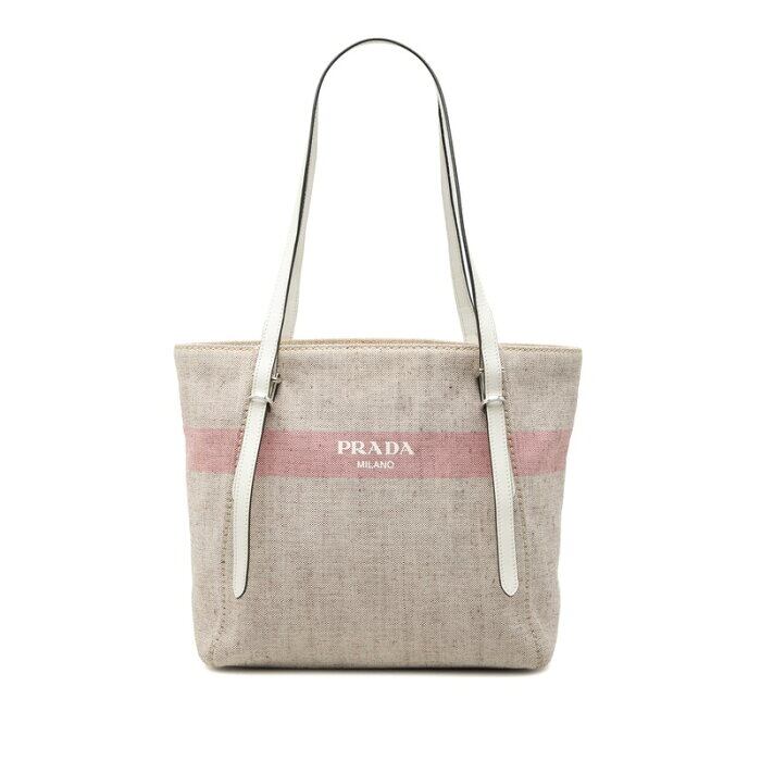 プラダ トートバッグ ベージュ マルチカラー キャンバス レザー レディース PRADA 【中古】