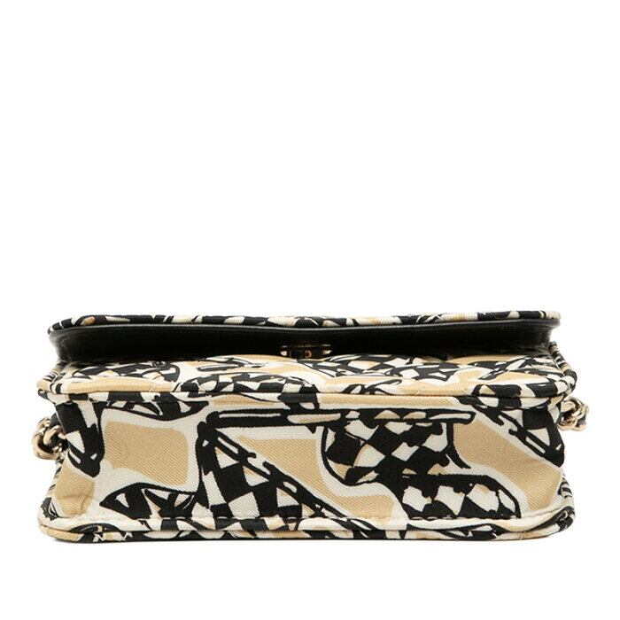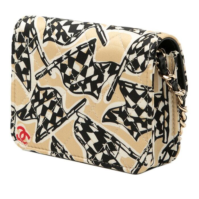 シャネル ココマーク マトラッセ チェッカーフラッグ 斜め掛け ミニ チェーン ショルダーバッグ ブラック ベージュ コットン レザー レディース CHANEL 【中古】