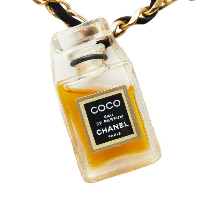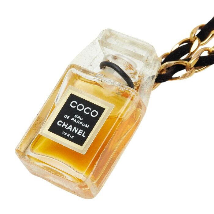 シャネル 香水瓶 パフュームボトル モチーフ ネックレス クリア ゴールド ブラック ガラス メッキ ベロア レディース CHANEL 【中古】
