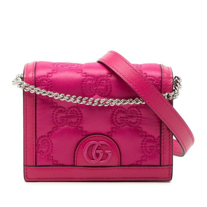 グッチ GGマーモント マトラッセ ミニ チェーン ハンドバッグ ショルダーバッグ 2WAY 723777 ピンク ナイロン レザー レディース GUCCI 【中古】