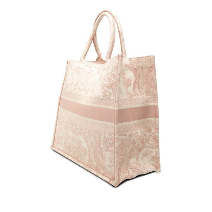 ディオール トワル ドゥ ジュイ リバース エンブロイダリー ブックトート ラージ トートバッグ ピンク キャンバス レディース Dior 【中古】