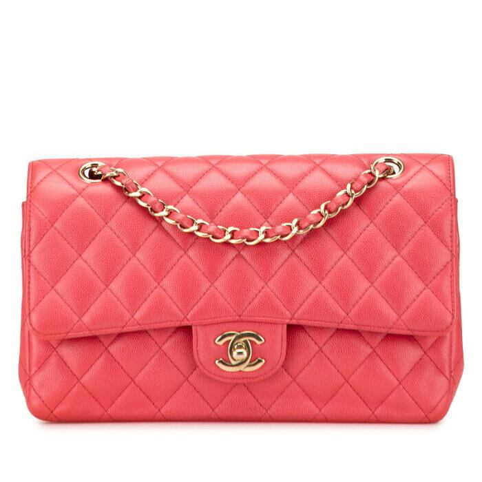 シャネル マトラッセ ココマーク Wフラップ チェーン ショルダーバッグ ハンドバッグ ピンク キャビアスキン レディース CHANEL 【中古】
