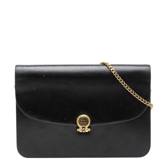 ディオール ヴィンテージ CDロゴ ショルダーバッグ ブラック ゴールド レザー レディース Dior 【中古】