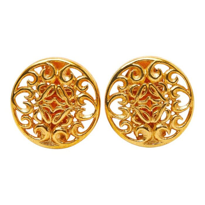ロエベ アナグラム ラウンド イヤリング ゴールド メッキ レディース LOEWE 【中古】