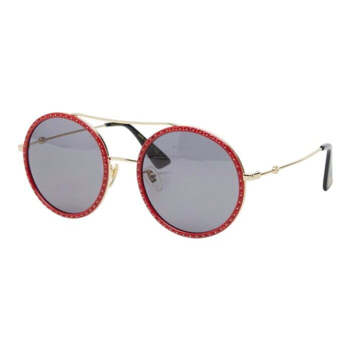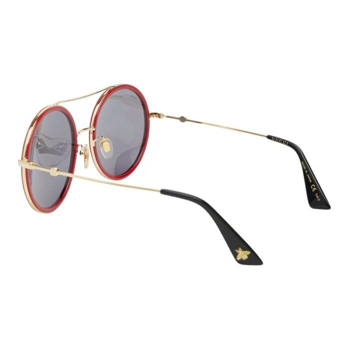 グッチ ツーブリッジ ラウンド サングラス サイズ 56ロ22-140 GG0061S レッド ゴールド メタル プラスチック レディース GUCCI 【中古】
