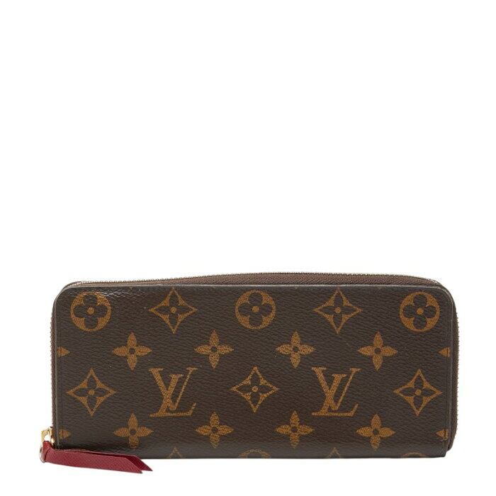 ルイ ヴィトン モノグラム ポルトフォイユ クレマンス ラウンドファスナー 長財布 M60742 ブラウン フューシャ PVC レザー レディース LOUIS VUITTON 【中古】