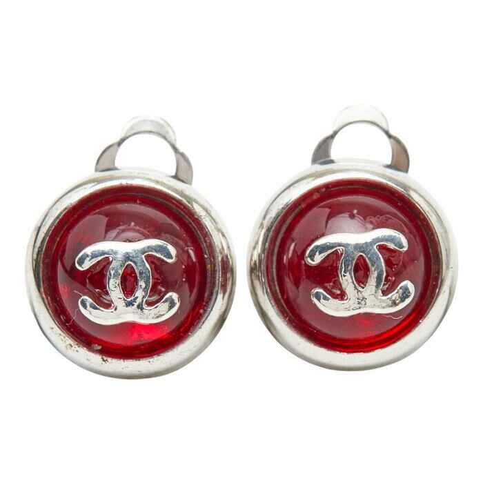 シャネル ココマーク ラウンド イヤリング シルバー レッド メタル レディース CHANEL 【中古】
