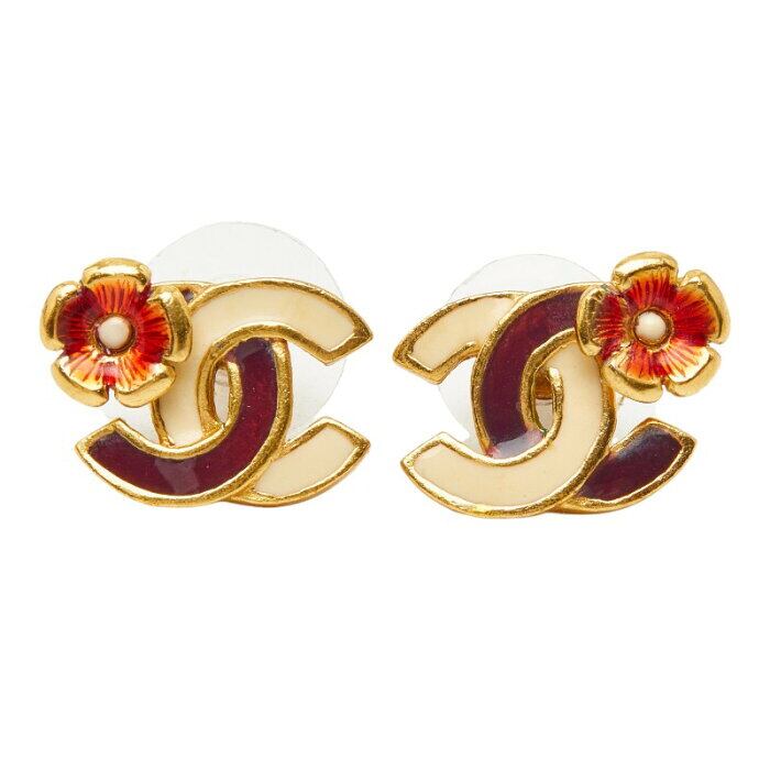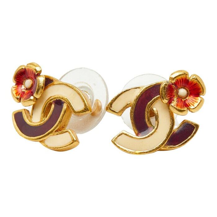 シャネル ココマーク カメリア フラワー ピアス ゴールド ボルドー レッド メッキ エナメル レディース CHANEL 【中古】