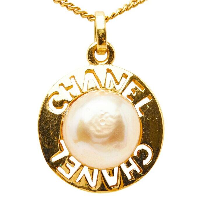 シャネル ロゴ ネックレス ゴールド メッキ フェイクパール レディース CHANEL 【中古】