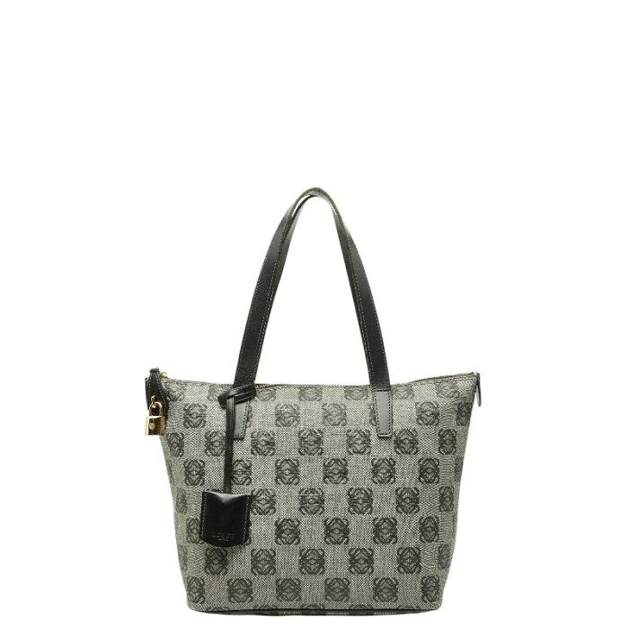 ロエベ アナグラム トートバッグ グレー ブラック PVC レザー レディース LOEWE 【中古】