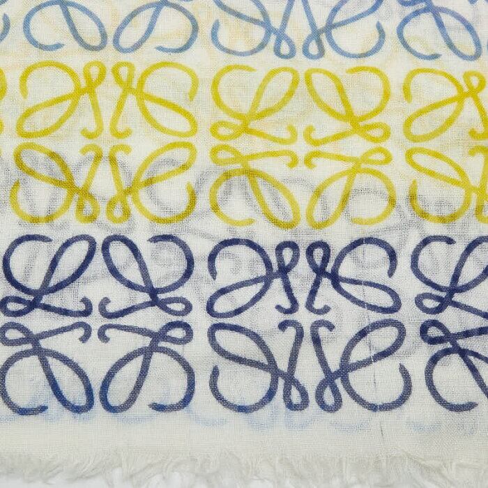 ロエベ アナグラム ストール ホワイト マルチカラー シルク ウール カシミヤ レディース LOEWE 【中古】