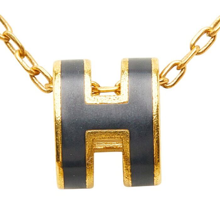 エルメス ミニ ポップアッシュ ネックレス ゴールド ブラック メッキ レディース HERMES 【中古】