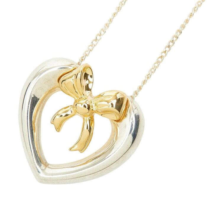 ティファニー ハートリボン ネックレス SV925 シルバー K18YG イエローゴールド レディース TIFFANY&Co. 【中古】