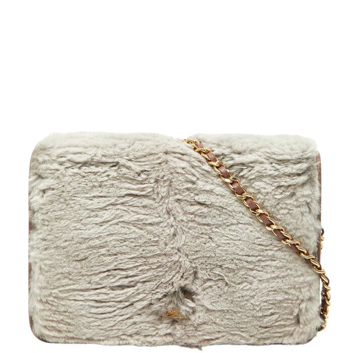 シャネル ココマーク チェーンウォレット ショルダーバッグ グレー ピンク ファー レザー レディース CHANEL 【中古】