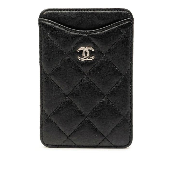 シャネル ココマーク マトラッセ 定期入れ パスケース ブラック ラムスキン レディース CHANEL 【中古】