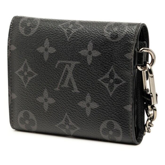 ルイ ヴィトン モノグラム エクリプス チェーン コンパクトウォレット 三つ折り財布 M63510 ブラック PVC メンズ LOUIS VUITTON 【中古】