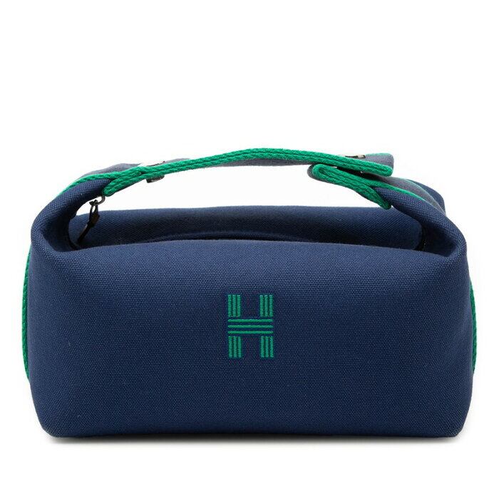 エルメス ブリッド ア ブラックPM ハンドバッグ ネイビー グリーン コットン レディース HERMES 【中古】