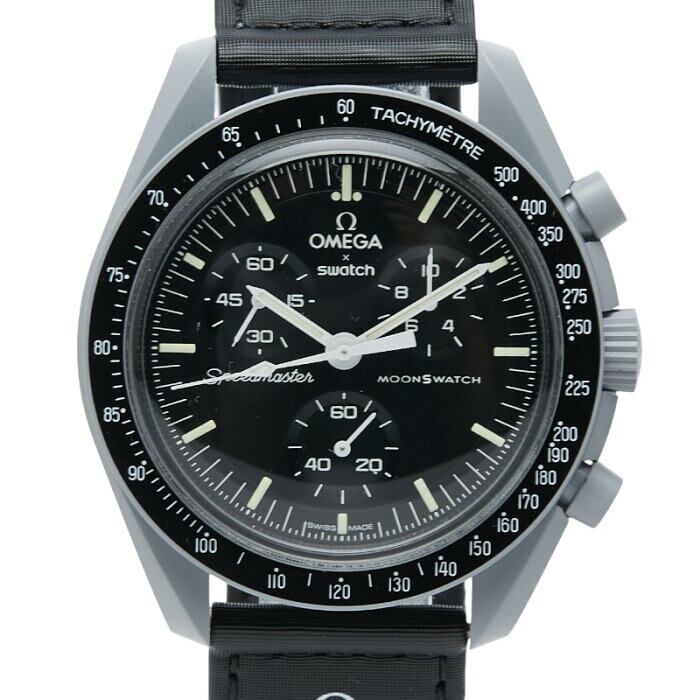 オメガ スウォッチ 65周年コラボレーション スピードマスター ミッション トゥ ザ ムーン 腕時計 SO33M100 クオーツ ブラック文字盤 バイオセラミック メンズ OMEGA 【中古】