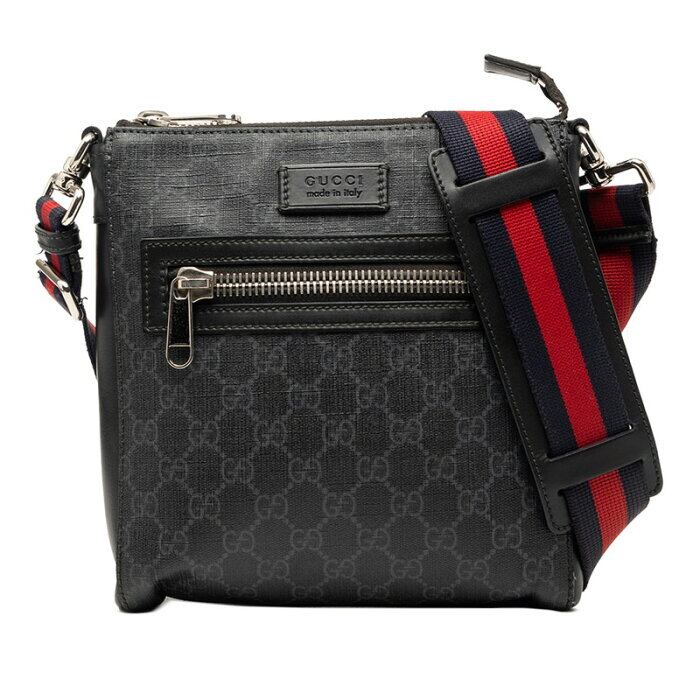 グッチ GGスプリーム 斜め掛け ショルダーバッグ 523599 ブラック グレー PVC レザー メンズ GUCCI 【中古】