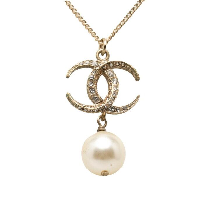 シャネル ココマーク ラインストーン ネックレス ゴールド メッキ フェイクパール レディース CHANEL 【中古】