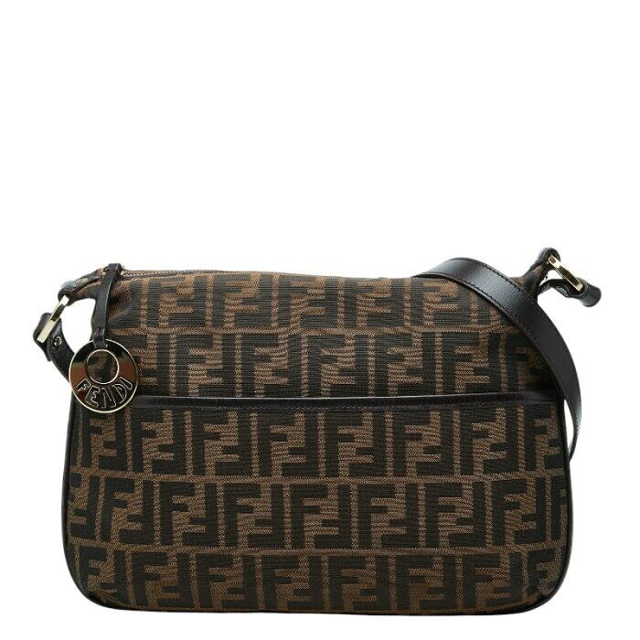 フェンディ ズッカ 斜め掛け ショルダーバッグ 8BT190 ブラウン キャンバス レザー レディース FENDI 【中古】
